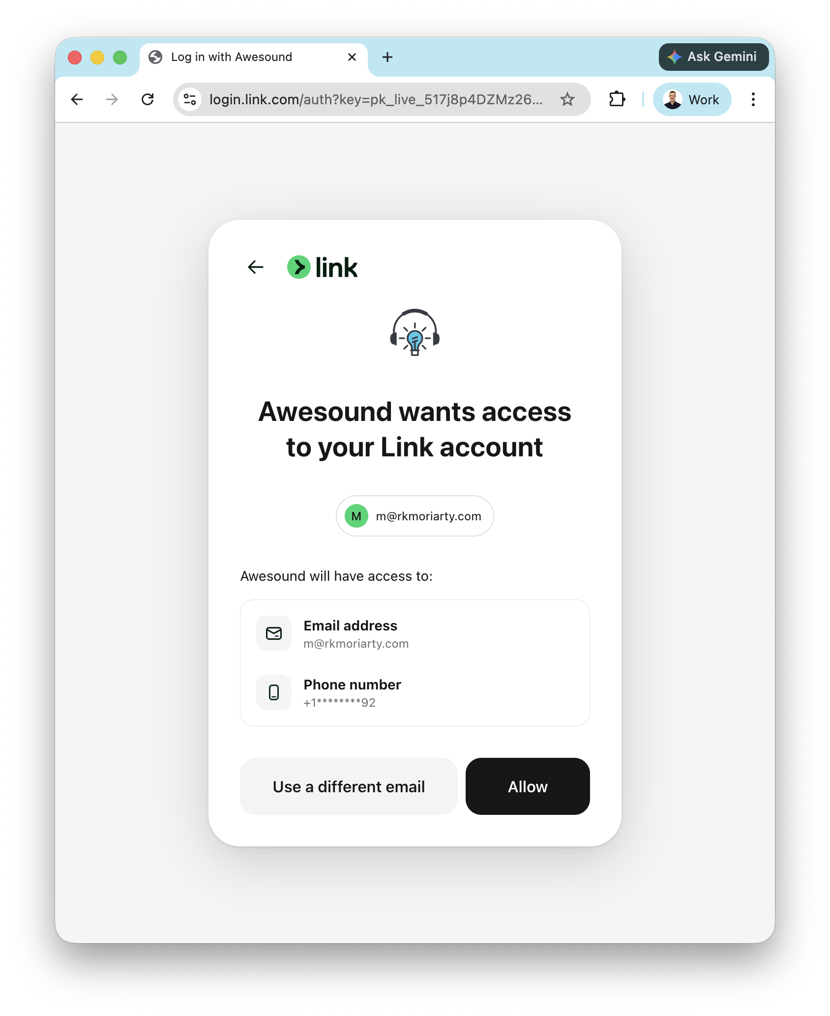 - Creator of first prototype of a new offering called “Log in with Link” (see loginwithlink.com, and screenshot in Appendix), a project that has since gone live. I worked with Clerk to show off Log in with Link on a shopify site: Clerk <> Shopify <> Link demo (password: clerk).