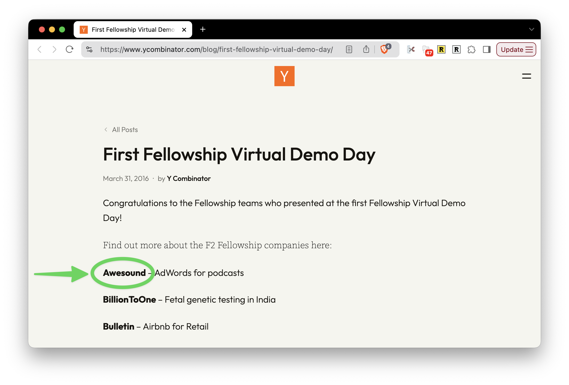 The canonical “announcing that Awesound is part of YC” is best clarified with this blog post: