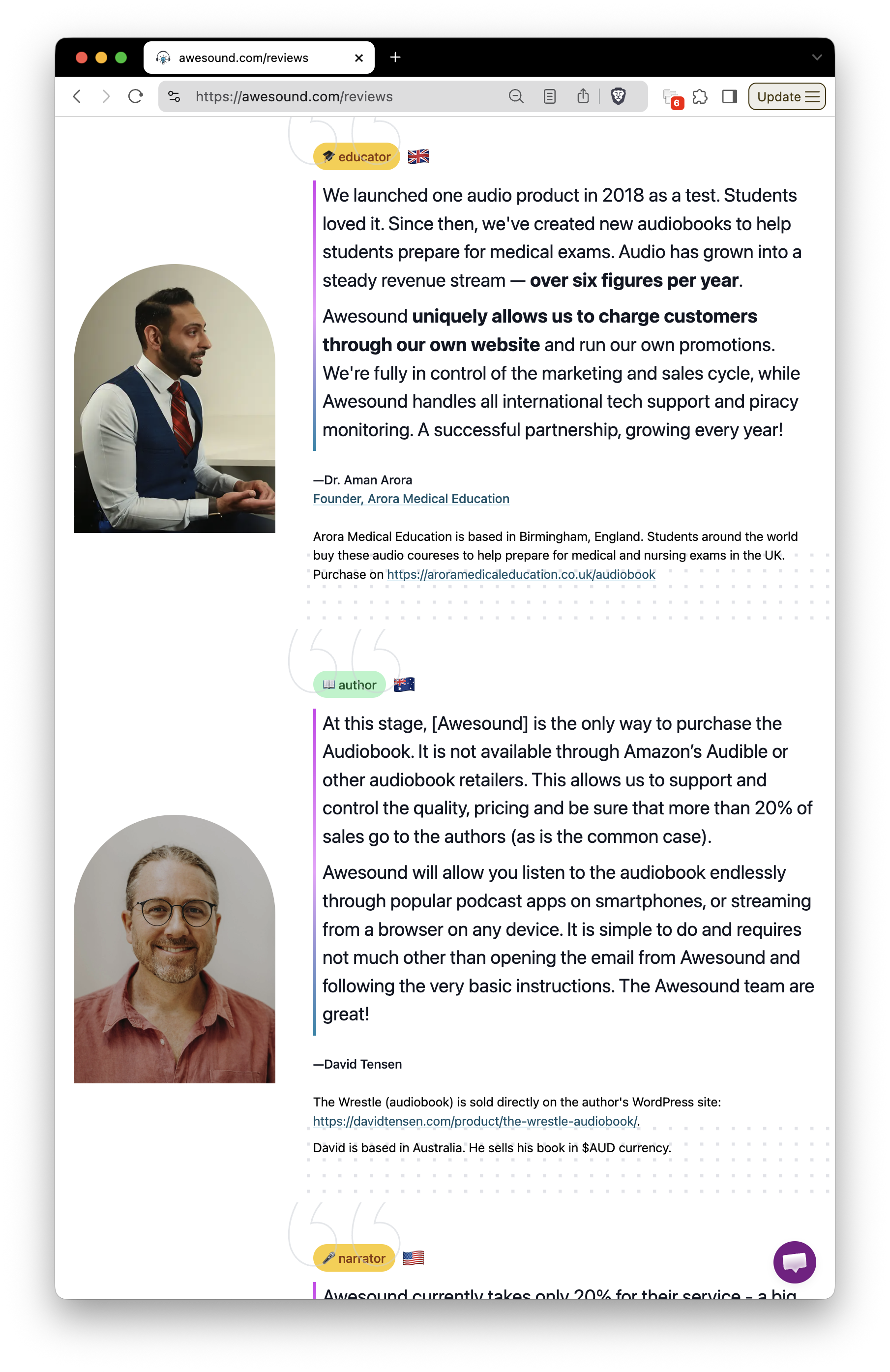 Despite Awesound being one of the smaller players in the industry, Awesound was first-to market with several important innovations that later became standard. Awesound shared its technical developments and roadmap, raised publisher expectations, and invited others to “catch up”. Podcasting is built on open standards (such as public RSS feeds), and in shipping new features ahead of other players, Awesound brought the entire industry forward.