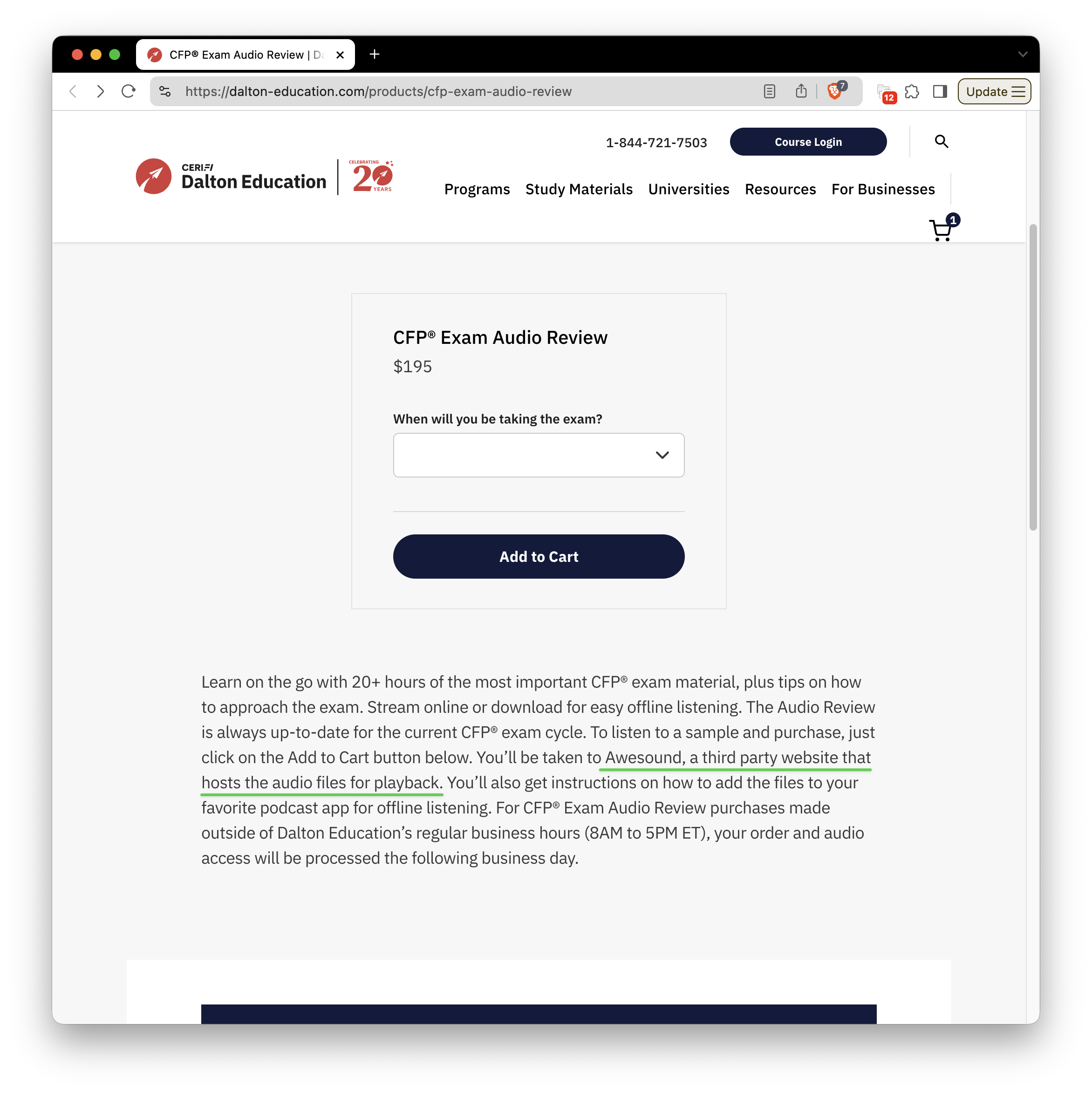 Screenshot from https://dalton-education.com/products/cfp-exam-audio-review