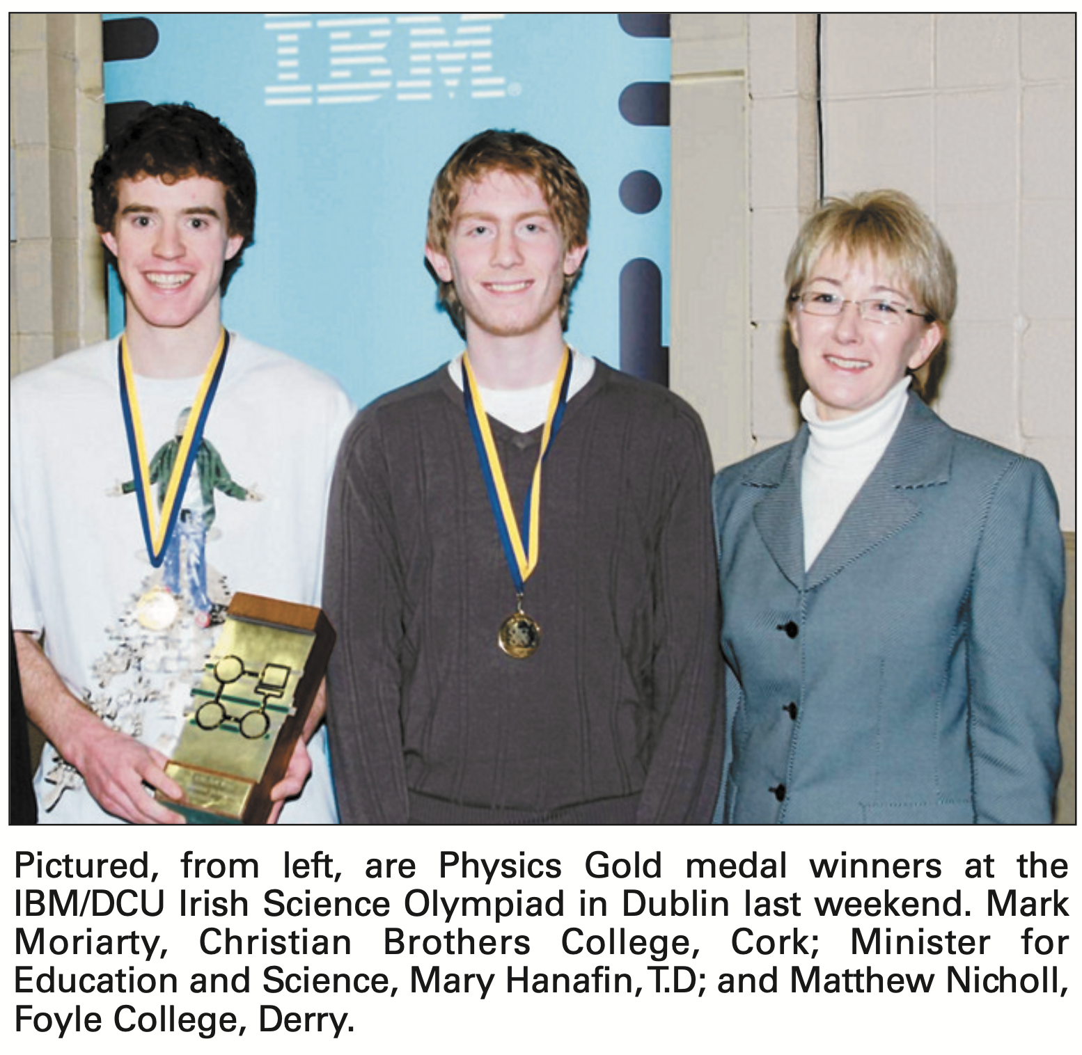 - 2008: Mr Moriarty won first place (again) in the Irish Physics Olympiad.