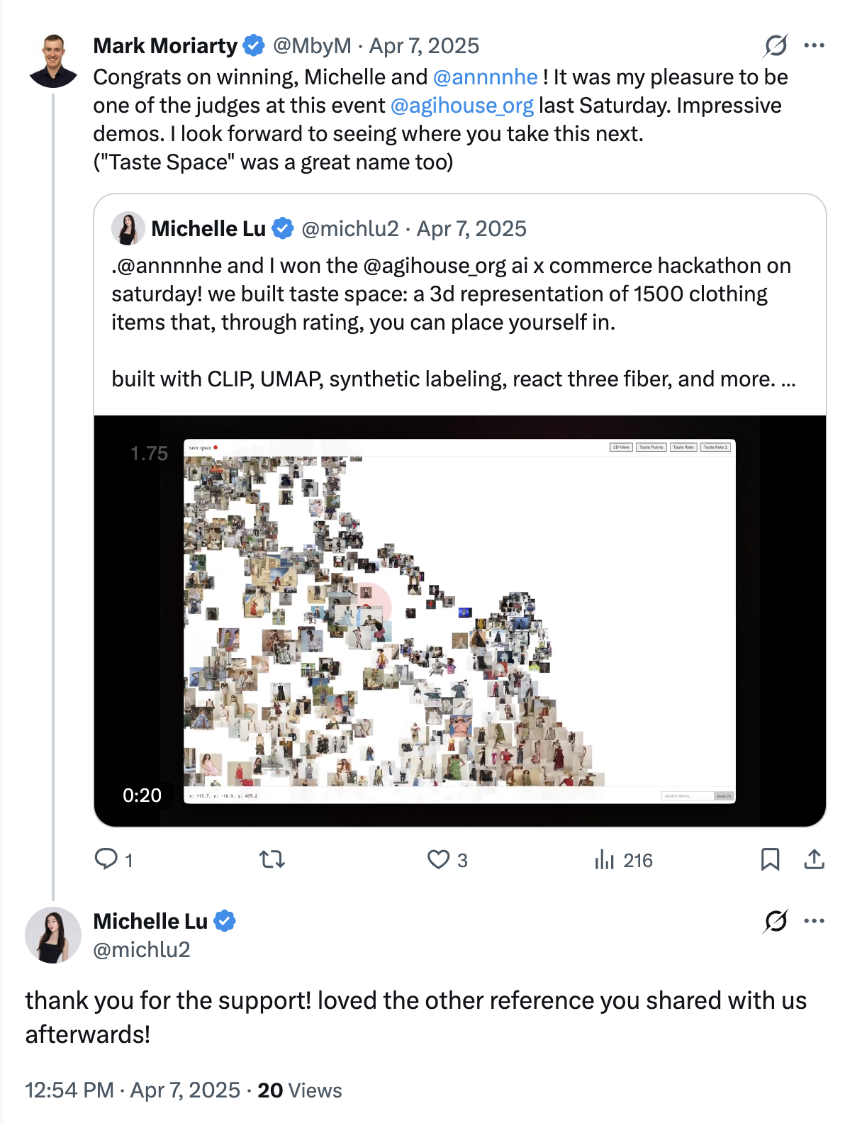 - Reply from hackathon winner: https://x.com/michlu2/status/1909334019558588705