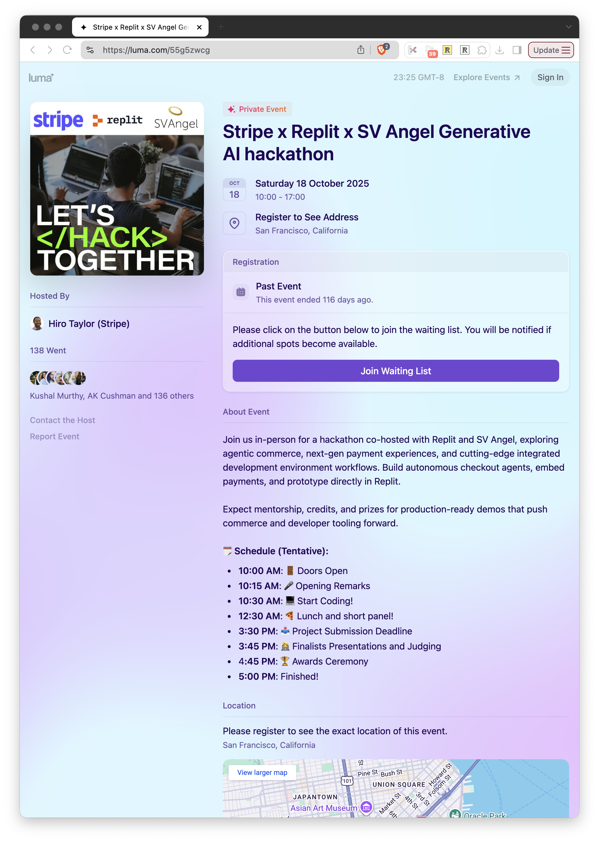 Event page: https://luma.com/55g5zwcg This was an exclusive invite-only hackathon, with over 100 attendees.