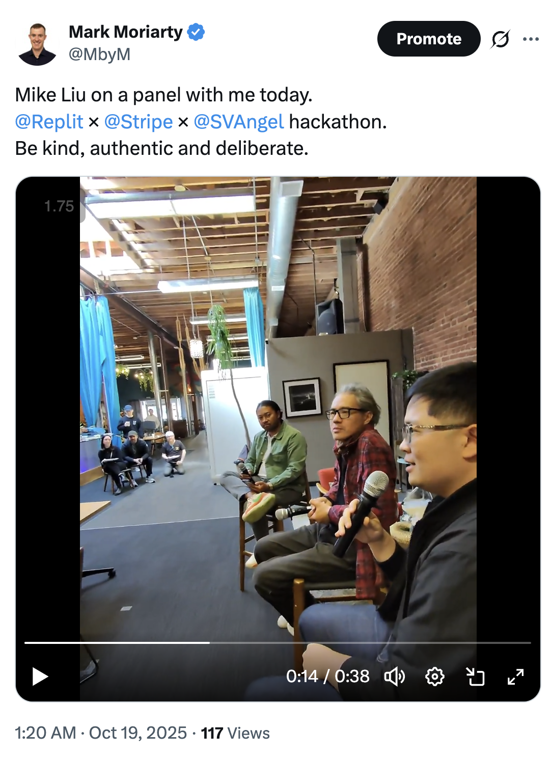 On 18 October 2025, Mr Moriarty was a judge at the “Stripe x Replit x SV Angel Generative AI hackathon”.